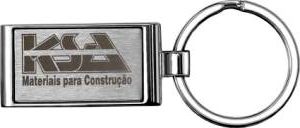 Chaveiro de metal formato escudo com chapa central, verso liso.