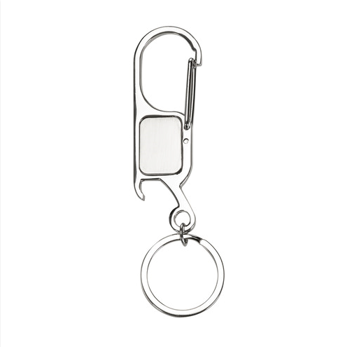 Chaveiro de metal giratório com detalhes coloridos e emborrachado.
