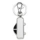 Chaveiro metal porta bolsa dobrável formato carro com detalhes branco e preto.