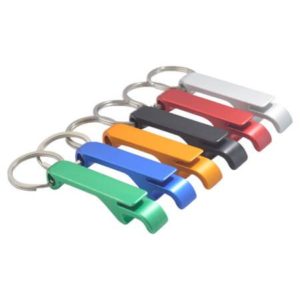Chaveiro abridor de metal formato “pé de galinha”.