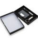 Porta cartão de alumínio, design da abertura em diagonal e com um furo central vazado na parte traseira.
